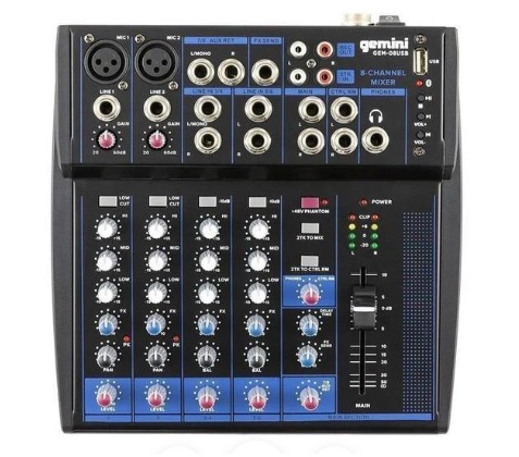 Совершенно новый микшер GEM-08USB, разработанный для облегчения подкастинга. Оснащен потоковой передачей по Bluetooth и воспроизведением через USB. 8 входов и 2 шины. GEM-08USB позволяет записывать самые современные записи профессионального качества на ходу. Этот микшер был создан, чтобы объединить удобный интерфейс с превосходным звуком. Аналоговый микшер премиум-класса со сверхнизким уровнем шума. Потоковая передача по Bluetooth для воспроизведения с любого совместимого устройства. 2 современных микрофонных предусилителя с фантомным питанием; 3-полосный эквалайзер со специальной регулировкой громкости. Настройте свой звук с помощью специального управления задержкой. Выход на наушники с отдельным регулятором громкости.