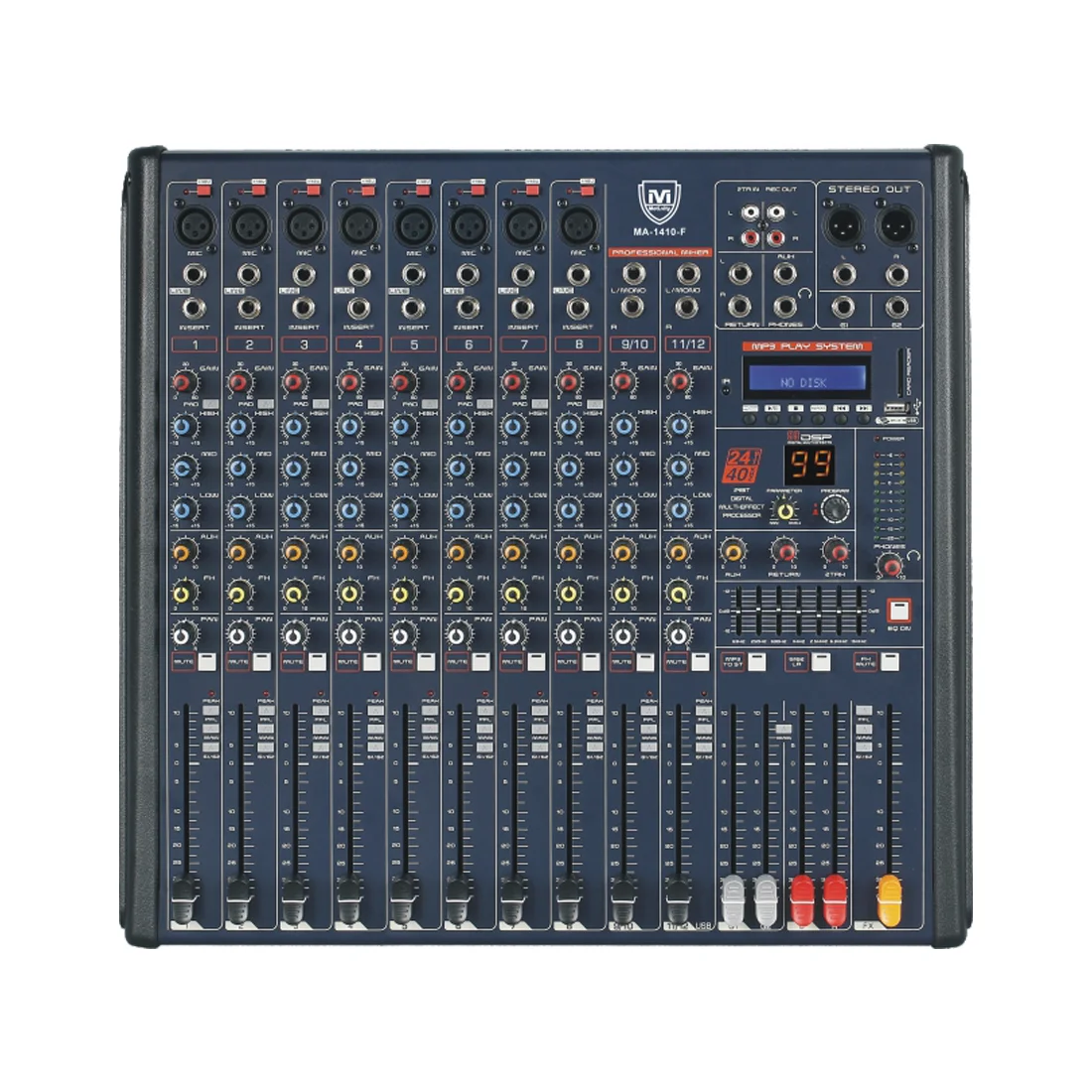 Каналы: 8 моно MIC/LINE, 2 линейных стерео, 1 RCA, 1 MP3/USB/ Bluetooth