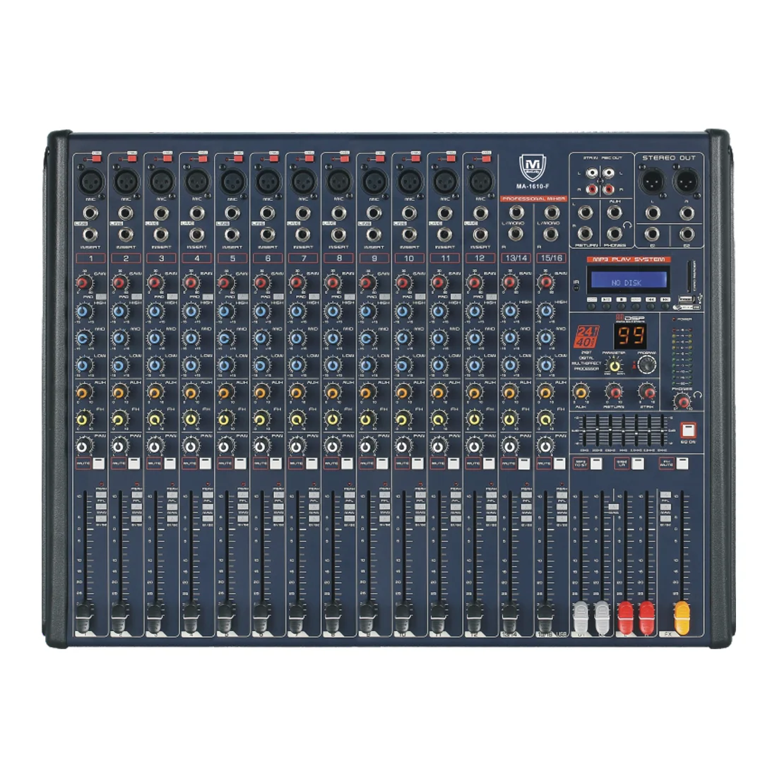 Каналы: 12 моно MIC/LINE, 2 линейных стерео, 1 RCA, 1 MP3/USB/ Bluetooth
