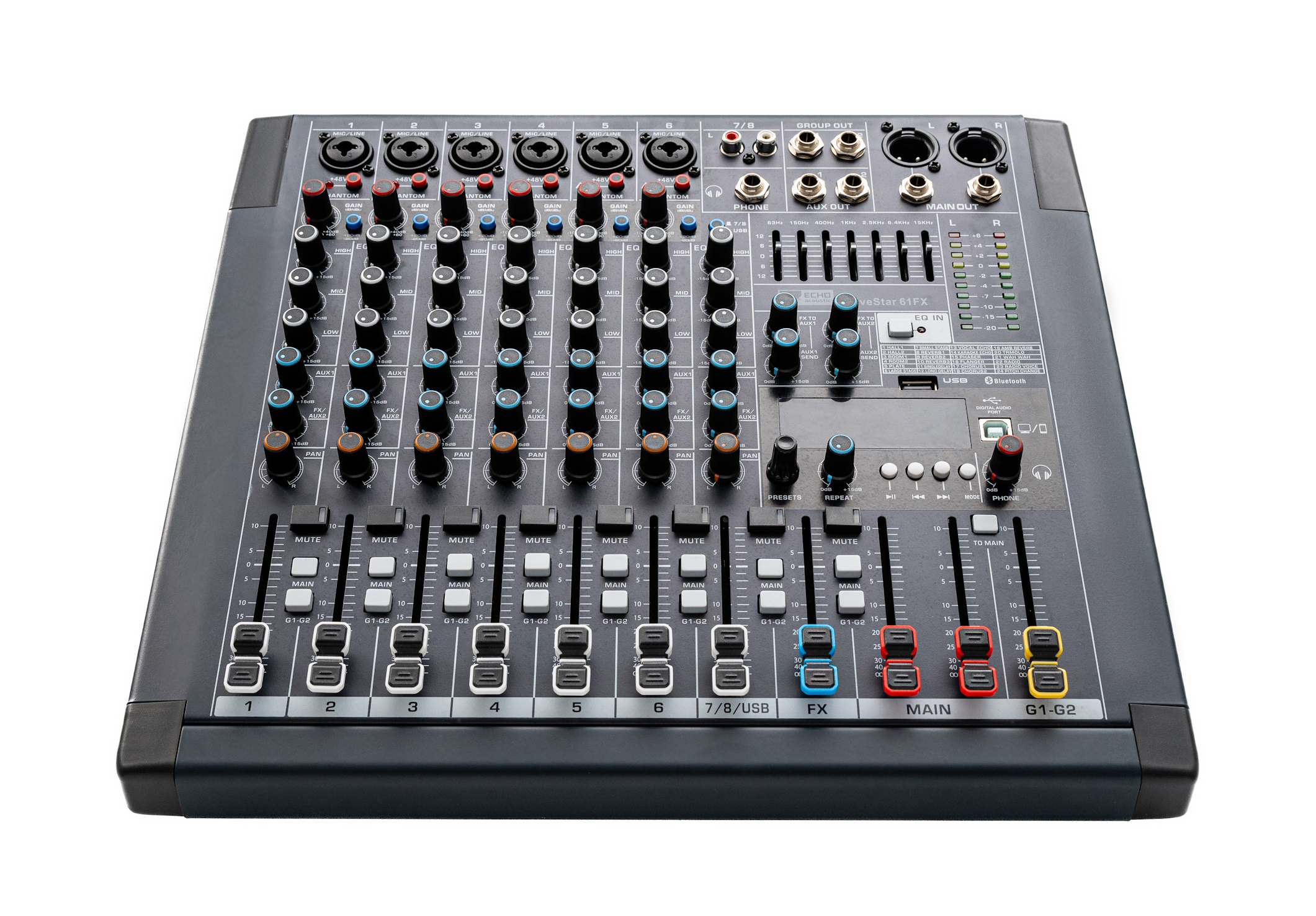 пульт, 6хМик, +48V, 1xСтерео, 2 AUX-шина, Подгруппа,