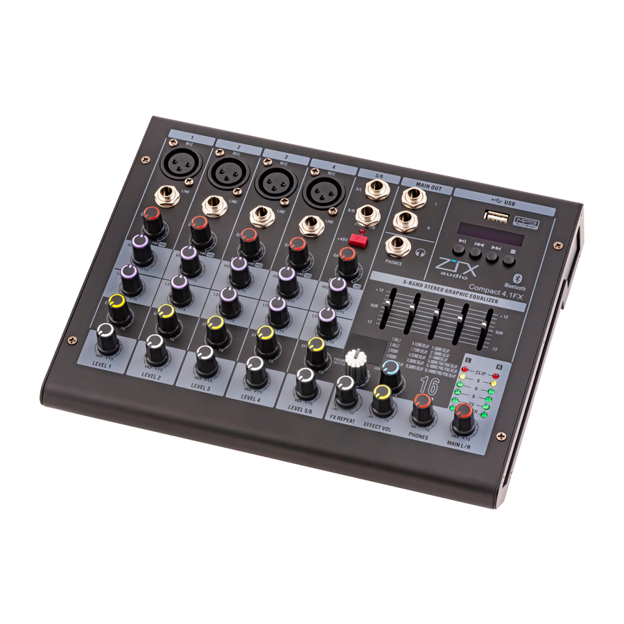 ZTX audio Compact 4.1Fx микшерный пульт 4mono, 1stereo каналы с MP3/DSP/BT