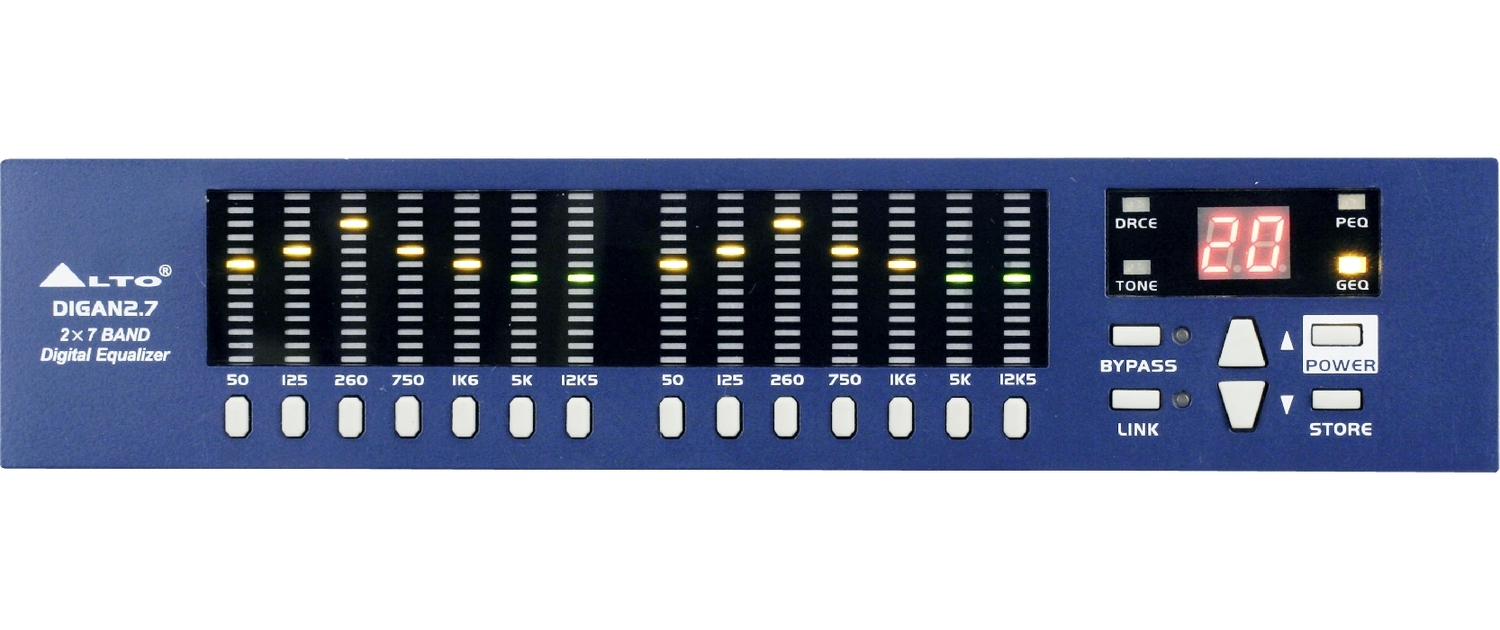 Цифро-аналоговый, 7-и полосный (4/3 окт), графический/параметрический(только с РС), стерео эквалайзер с возможностью управления с РС по USB1.1. Количество полос: 2х7 Частотный диапазон: 20Гц-20кГц Коэффициент искажений: <0,015% Соотношение сигнал/шум: >90дБ Количество присетов: 30 заводских, 70 пользовательских редактируемых. Входное сопротивление: 50 кОм балансный/ 25 кОм небалансный Выходное сопротивление: 120 кОм балансный /60 кОм небалансный Управление: электронное, с РС по USB 1.1 Питание: 9В АС/6Вт. Размеры: 261(9,5")х150х44 (1U)мм Вес: 1,21 кг