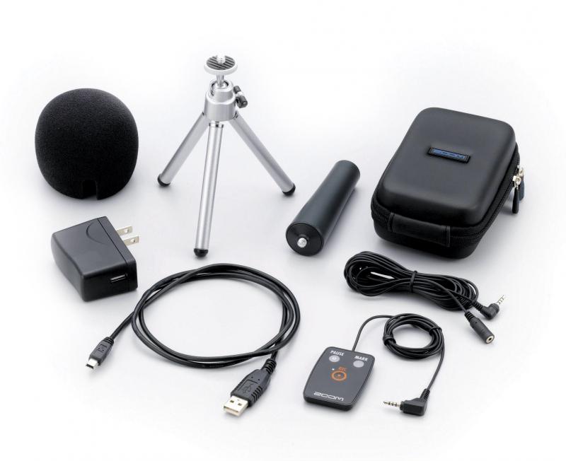 APH2n – дополнительный комплект аксессуаров, включающий 7 приспособлений для работы с ZOOM Н2n. Пульт дистанционного управления можно использовать для запуска, остановки и паузы записи и добавления меток. Также в комплект входят: ветрозащита, снижающая шумовые помехи, переходник для установки рекордера на микрофонную стойку, регулируемый настольный штатив-тренога, мягкий чехол, адаптер и USB-кабель.